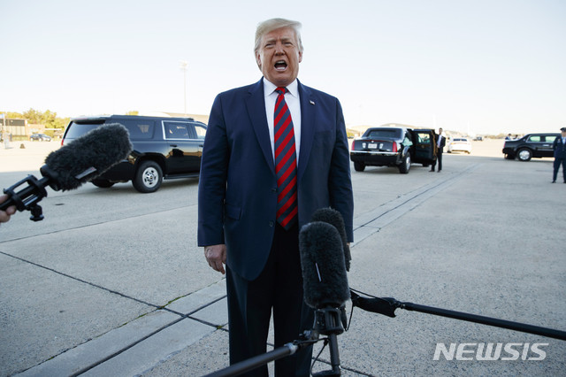 | ▲ 28일(현지시간) 도널드 트럼프 미국 대통령이 워싱턴 인근 앤드루스 공군기지에서 취재진의 질문에 답변하고 있다. |