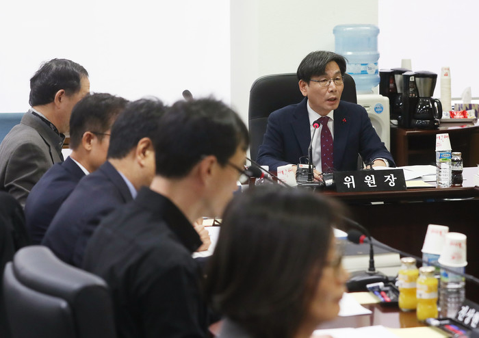 ▲ 엄재식 원자력안전위원회 위원장이 24일 오전 서울 원자력안전위원회에서 열린 회의를 주재하고 있다. 원자력안전위원회가 이날 회의에서 경북 경주시 월성 원자력발전소 1호기의 영구정지를 다시 논의하고 있다. 연합뉴스 제공