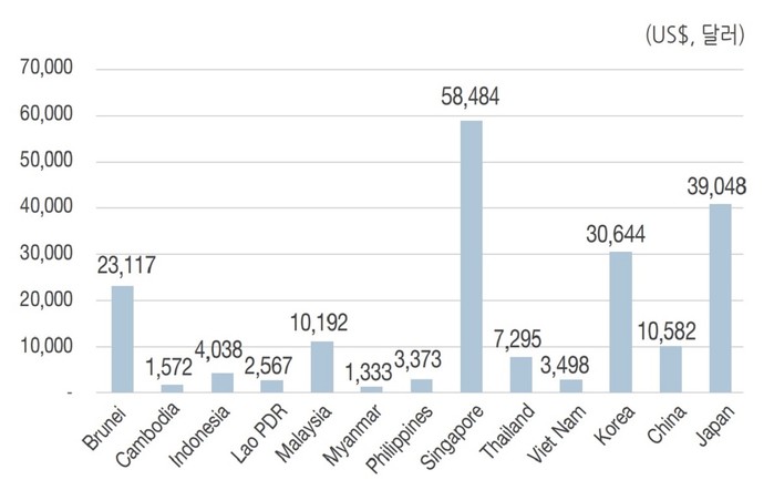 또 아세안 국가들의 국내총생산(GDP)은 약 3조1060억 달러(한화 약 3527조 4000억원) 수준인 것으로 파악됐다. 아세안 국가들과 우리나라 간의 총 무역량은 약 1439억 달러(한화 약 163조 4416억 원) 규모인 것으로 파악됐다.