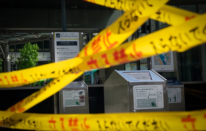 ▲ 코로나19로 출입이 금지된 일본 도쿄 시내 흡연장 입구 전경/ 사진= 게티이미지. |
