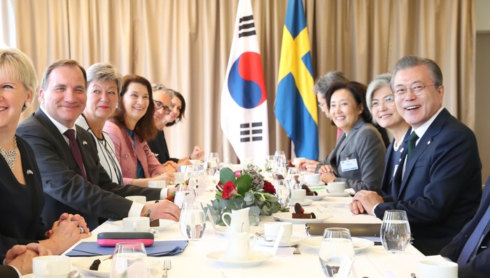 문재인 대통령은 18일 오후 청와대에서 스테판 뢰벤 스웨덴 총리와 정상회담을 한다.