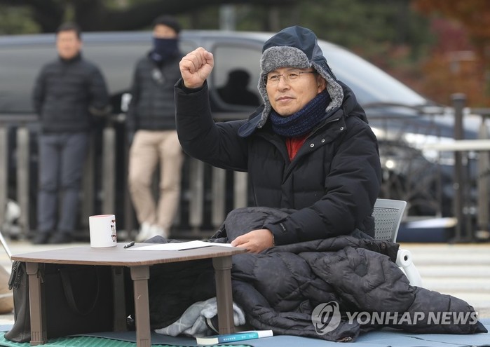황교안 자유한국당 대표가 22일에도 청와대 앞에서 3일째 무기한 단식 투쟁을 계속한다.