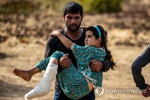▲ 박격포탄에 부상한 시리아 소녀와 아버지