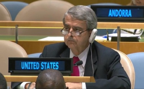 ▲ 유엔주재 미국대표부 관계자, 김성 북한 유엔대사 연설 경청 |