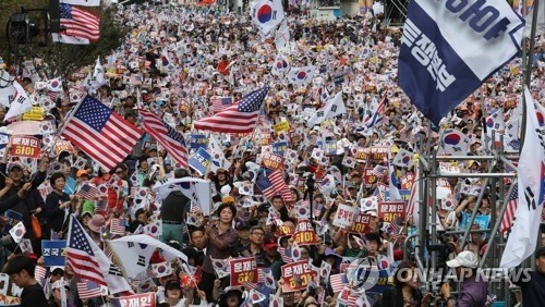 자유한국당은 오후 1시부터 세종문화회관 앞에서 '문재인 정권의 헌정 유린 중단과 위선자 조국 파면 촉구 광화문 규탄대회'를 개최했다. 한국당 측은 집회 참석 인원을 300만명으로 추산했다.