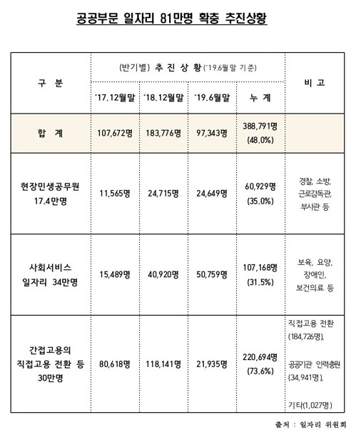 文정부 '공공부문 81만개 일자리 창출' 공약 달성률 48%