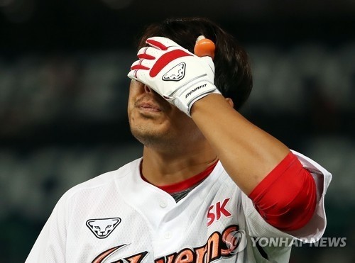아쉬운 표정 짓는 한동민/연합