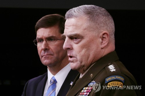 ▲ 마크 에스퍼 국방장관(왼쪽)과 함께 선 마크 밀리 미 합참의장