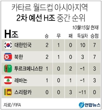 이로써 2승1무(승점 7·골득실+10)를 거둔 한국은 북한(승점 7·골득실+3)과 승점에서 어깨를 나란히 했지만 골득실에서 앞서 H조 1위 자리를 유지했다. 한국은 3경기 연속 무실점 경기를 이어갔다.