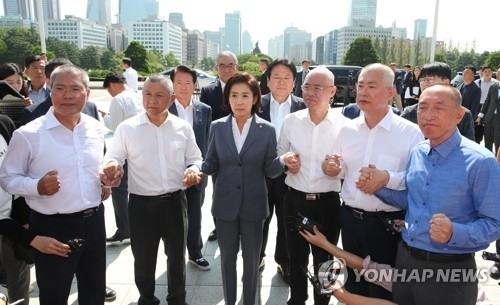 한국당은 이날 의원총회를 열고 대정부질문과 국정감사 등 정기국회 일정을 통한 '반조(反曺·반조국) 투쟁' 방침도 공유했다.