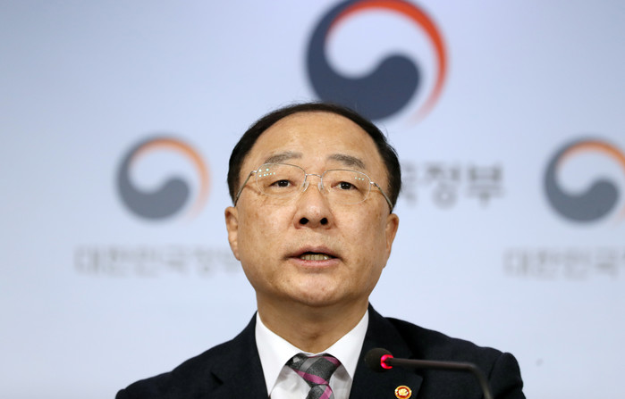 홍남기 경제부총리 겸 기획재정부 장관이 지난 15일 오전 정부서울청사에서 열린 2019년 고용동향 및 정책방향 관련 합동브리핑에서 브리핑을 하고 있다. 연합뉴스 제공