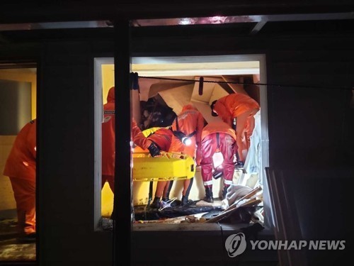 3일 새벽 제18호 태풍 '미탁'으로 400㎜가 넘는 폭우가 쏟아진 강원 삼척시 오분동 인근에서 산사태가 나 소방대원들이 매몰된 김모(77·여)씨를 구조하고 있다. 김씨는 인근 병원으로 옮겨졌으나 숨졌다. |
