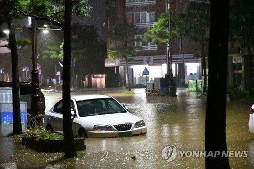 제18호 태풍 '미탁'으로 강원 삼척에 400㎜의 폭우가 쏟아져 삼척 시내 도로가 물에 잠겼다. |