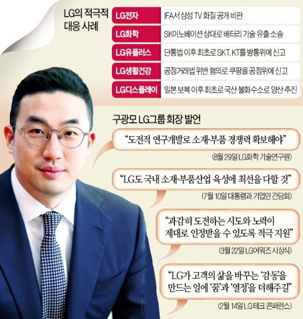지금은 양상이 다르다. 전자뿐만 아니라 화학, 통신, 유통 할 것 없이 전방위적이다. 그것도 싸움을 걸어오면 받아치는 수세적 양상이 아니다. 상대방을 향해 선제적으로 움직이는 게 지금 LG의 모습이다.