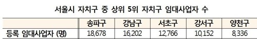 서울 등록 임대사업자 수 상위 5개 구(區)