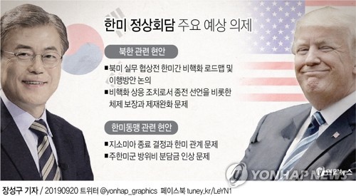 유엔총회 참석을 위해 미국 뉴욕을 방문한 문재인 대통령이 24일 오전(현지시간 23일 오후) 도널드 트럼프 대통령과 한미 정상회담을 한다.
