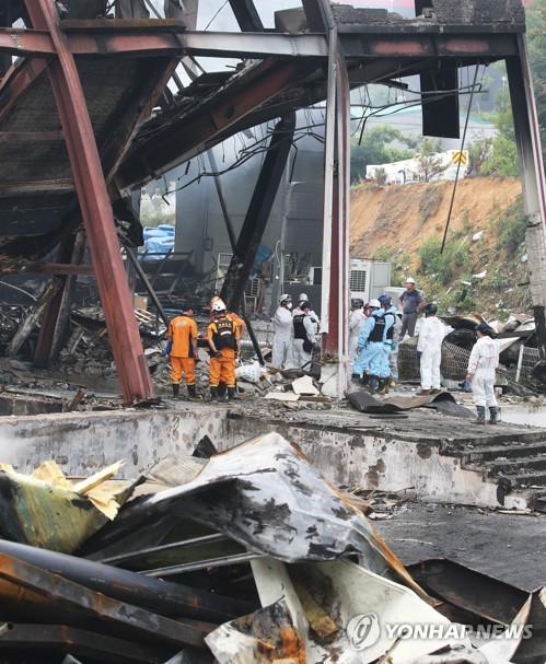지난달 6일 오후 1시 15분께 이 공장 건물 지하 1층에서 화재와 폭발이 일어나 진압에 나섰던 소방관 1명이 순직했다. 또 다른 소방관 1명과 공장 관계자 9명도 다쳤다.