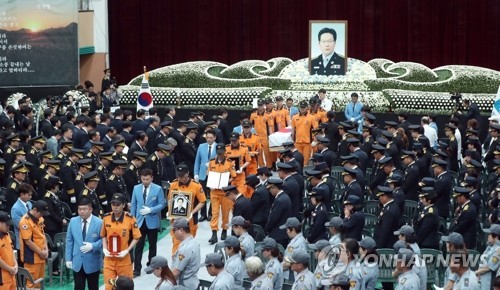 지난달 8일 안성 공장화재 진압중 순직한 석원호 소방위 영결식