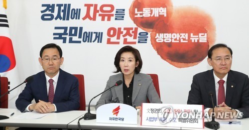 나 원내대표는 또한 "사법부를 무법부로, 검찰을 정치 검찰로 만들고 있다. 절대 권력을 완성해 영구 집권을 노리겠다는 것"이라며 "이 정권이 진정한 사법개혁과 검찰개혁에 오히려 심각한 방해 세력"이라고 강조했다.