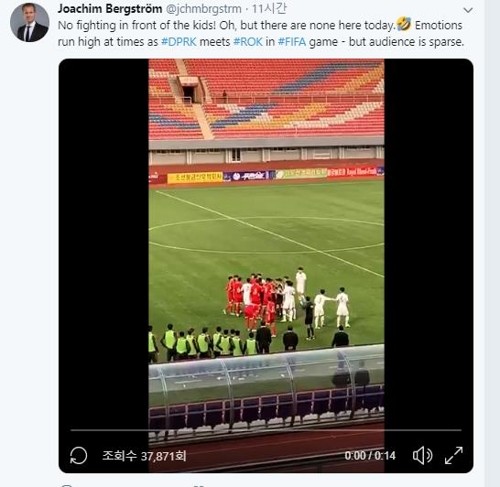 남북축구 관전 스웨덴 대사, 국가연주·양팀 충돌 장면 등 공개