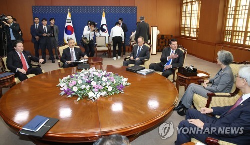 두 명의 미 국무부 고위당국자가 함께 외교부 청사를 찾은 것으로, 강경화 장관은 이례적으로 서로 다른 용건으로 방문한 이 두 명을 함께 접견했다. 강 장관이 오전 10시부터 국회 예결위에 출석해야 해 시간이 없었기 때문이다.