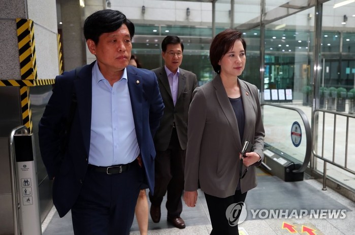 ▲ 유은혜 사회부총리 겸 교육부 장관(오른쪽)과 국회 교육위원회 간사인 더불어민주당 소속 조승래 의원이 6일 오전 서울 영등포구 여의도의 한 음식점에서 대입제도 개선 방향을 논의하기 위한 비공개 당정청 회의를 마치고 이동하고 있다.