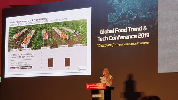 ▲ 2019 글로벌 푸드 트렌드 & 테크 컨퍼런스에서 발표중인 리머 슈어-스톨러(Limor Zur-Stoller) 루틸리티 CEO |