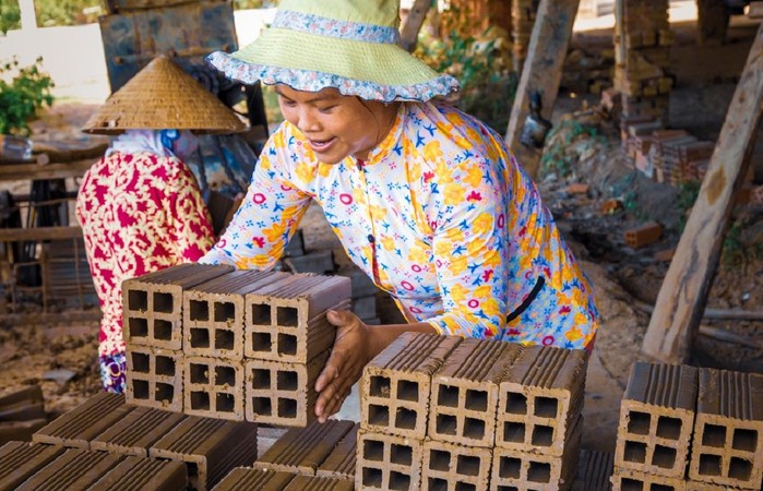 ▲ 베트남내 한 제조공장에서 근로자가 벽돌을 나르고 있다/ 사진= 게티이미지. |