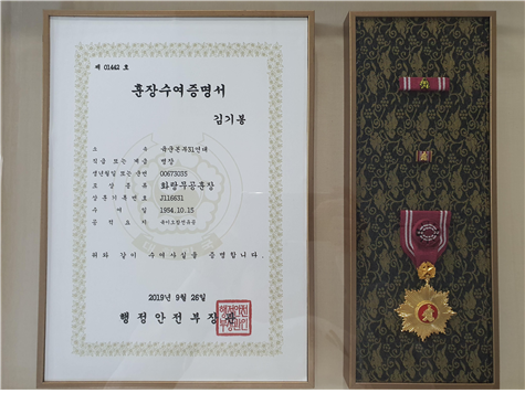 ▲고(故) 김기봉 이등중사 훈장수여 증명서 |
