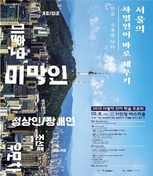서울시는 오는 8∼9일 시민청에서 차별적 언어를 다루는 학술토론회와 시민발표대회를 개최한다고 7일 밝혔다.