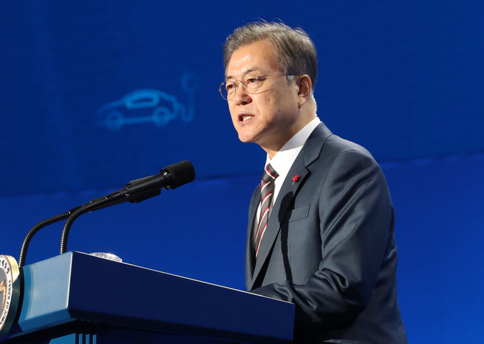 문재인 대통령은 9일 "핸드폰·전기차·에너지저장장치 등으로 배터리 수요가 빠르게 증가해 2025년이면 (배터리 산업이) 메모리반도체보다 큰 시장으로 성장할 것"이라고 말했다.