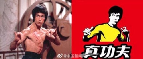 ▲ 이소룡의 영화 속 쿵푸 자세와 '전(眞) 쿵푸' 로고 [중국신문망 웨이보 캡처]