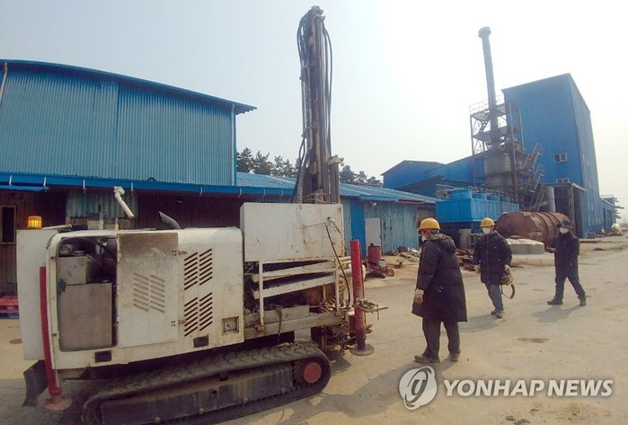 주민 다수가 암에 걸린 전북 익산시 함라면 장점마을 인근 비료공장 내에서 불법 매립 폐기물을 찾기 위한 시추작업이 지난 3월 19일 진행되고 있다.