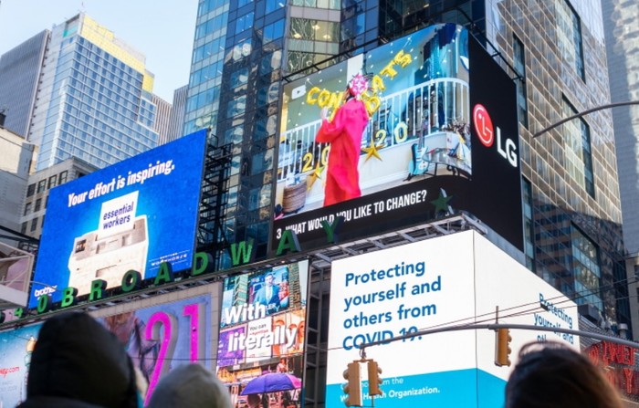 ▲ 미국 타임스스퀘어 전광판에 게시된 LG 광고 전경/ 사진= LG그룹 제공. |