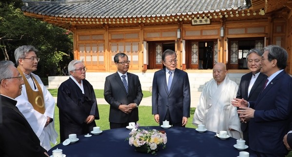 문재인 대통령은 21일 주요 종교 지도자들을 청와대 상춘재로 초청해 오찬을 함께 했다.