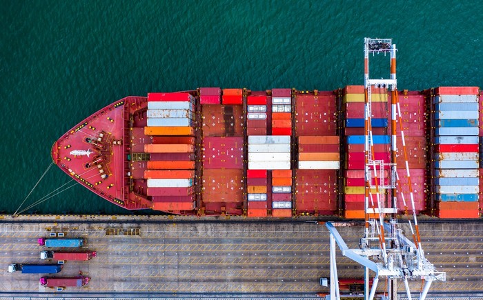 ▲ 수출을 대기중인 컨테이너선이 대만의 한 무역항에서 선적 작업 중이다/ 사진= 게티이미지. |