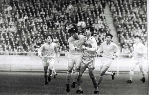 ▲ 1990년 10월11일 북한 평양에서 열린 남북 통일축구 1차전 경기 장면 |