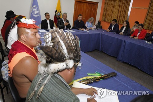 아추아르족 원주민들이 쓰는 머리 장식물과 화장을 하고 협상 테이블에 나온 CONAIE의 하이메 바르가스 대표는 합의가 이뤄진 뒤 모레노 대통령에게 감사를 표하는 한편 에콰도르 원주민의 처우 개선을 촉구했다.