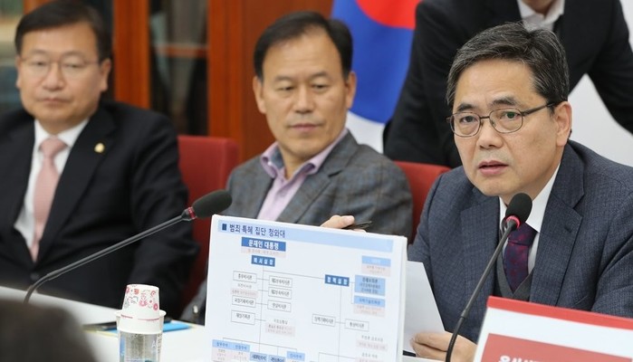 ▲  자유한국당 곽상도 의원이 11월 28일 오후 서울 여의도 국회에서 열린 '울산시장 부정선거 등 친문게이트 진상조사위원회 1차 회의'에서 발언하고 있다. 연합뉴스 제공