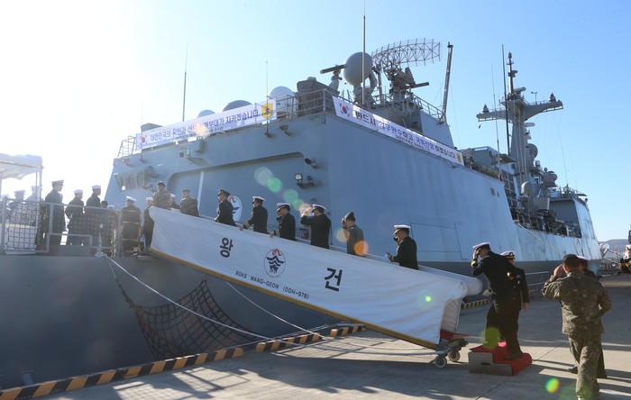 ▲ 지난해 12월 27일 오전 부산 해군작전사령부에서 청해부대 31진 왕건함 파병에 앞서 해군 지휘부가 승선원들을 격려하기 위해 함정에 오르고 있다. 연합뉴스 제공