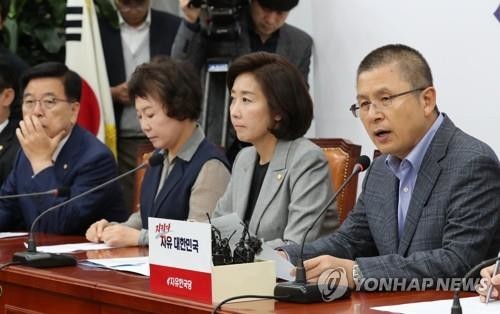 나경원 원내대표는 “관제 데모를 넘어선 황제데모”라며 “대놓고 검찰 수사를 방해하는 이 집권 세력이야말로 내란 음모고, 체제 전복 세력”이라고 비판했다. 정용기 정책위의장은 촛불집회를 “좌파준동 사기 집회”라고 비난하며 “조국 수호와 함께 윤석열 체포라는 구호가 나왔다. 법치주의 실종·헌법 파괴의 광란의 현장”이라고 주장했다.