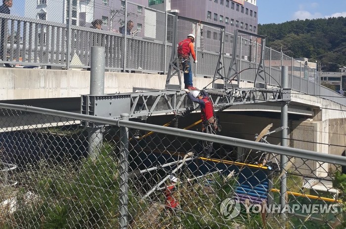 태풍에 날아간 철판에 동해선 전차선 끊어져...운행중단후 '재개'