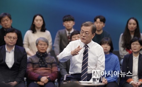 문재인 대통령이 19일 오후 서울 상암동 MBC에서 '국민이 묻는다, 2019 국민과의 대화'를 하고 있다.