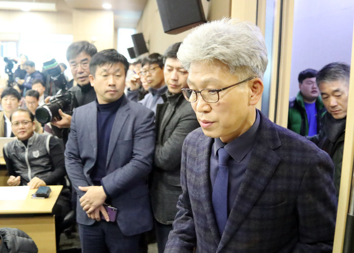 ▲ 송병기 울산시 경제부시장이 5일 자신의 청와대 첩보 제공 논란과 관련한 입장을 표명하기 위해 울산시청 프레스센터에 들어서고 있다. 연합뉴스 제공