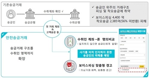 보이스피싱이 의심되는 거래는 송금인에게 경고 메시지로 위험성을 알리는 서비스는 내년 4월께 선보인다.