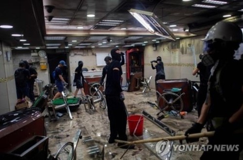 고교생 피격 분노한 홍콩 시위대, 中기업 점포 집중 공격