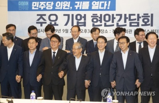더불어민주당은 25일 오후 여의도 전경련 회관에서 주요 기업 현안 간담회를 개최하고 경제 활성화 방안을 논의했다.