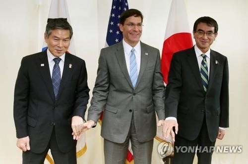 태국에서 열린 아세안확대 국방장관회의(ADMM-Plus)에 참석 중인 정경두 국방부 장관은 17일 오후(현지시간) 기자간담회를 통해 미국이 지소미아 유지를 위해 한국과 일본을 강하게 압박하고 있다고 밝혔다. 정 장관은 "지소미아는 한미동맹 상징이나 전략적 가치가 많았다. 미국 측에서는 실제로 그렇게 생각하고 있다"며 "(미국 측은)일본 측에도 압박을 가하고 있고 우리에게도 지소미아를 유지하도록 하라고 요구하고 있다"고 했다.
