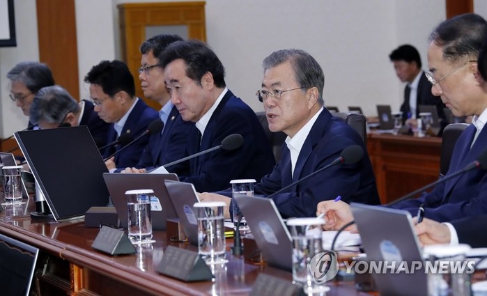 문재인 대통령이 지난 10월 8일 오전 청와대에서 열린 국무회의를 주재하고 있는 모습.