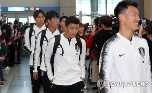 김일성경기장에서 열리는 북한과의 카타르월드컵 예선을 위해 평양 원정길에 오르는 한국축구 대표팀이 13일 출국을 위해 인천국제공항으로 들어서고 있다